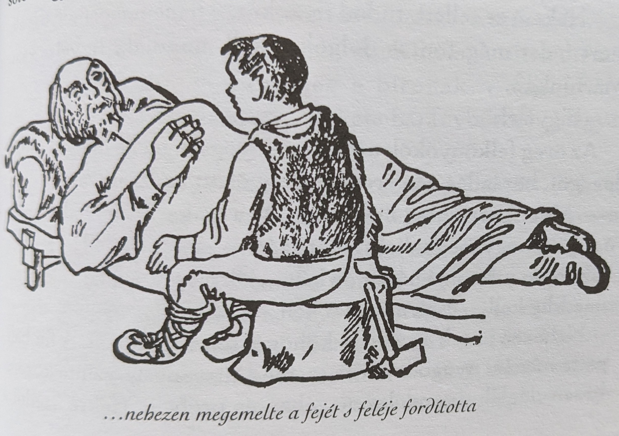 Az öreg nagyon oda volt. Nyögött, forgolódott a vackán. Barázdás arcából kiütköztek a csontok, gyér, szürke haja izzadtságtól csapzottan lógott a homlokába.