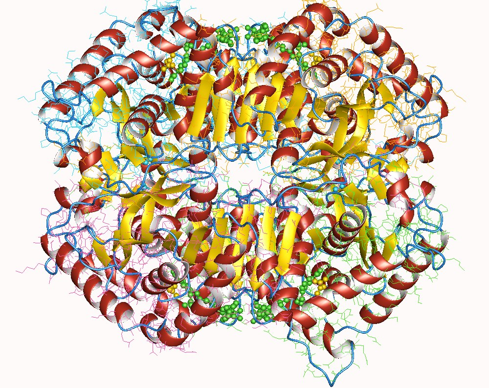 Az emberi tejsav-dehüdrogenáz (LDH) tisztán látszó tetramer (négyrészes) szerkezete